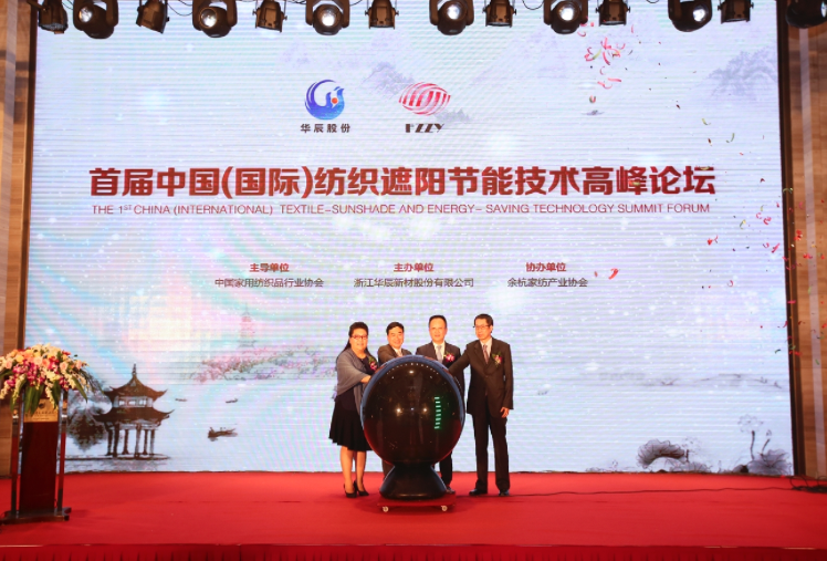 10月10日,首屆中國(國際)紡織遮陽節能技術高峰論壇暨“華辰股份”二十二年感恩慶典在杭州臨平舉行。本屆論壇主導單位為中國家用紡織品行業協會,由浙江華辰新材股份有限公司主辦,余杭家紡產業協會協辦。中國紡織工業聯合會副會長、中國家用紡織品行業協會會長楊兆華,余杭區副區長黃宏瞻,臺灣紡織業拓展會副董事長翁茂鐘,陶氏化學中國有限公司亞太區總監魏東出席本